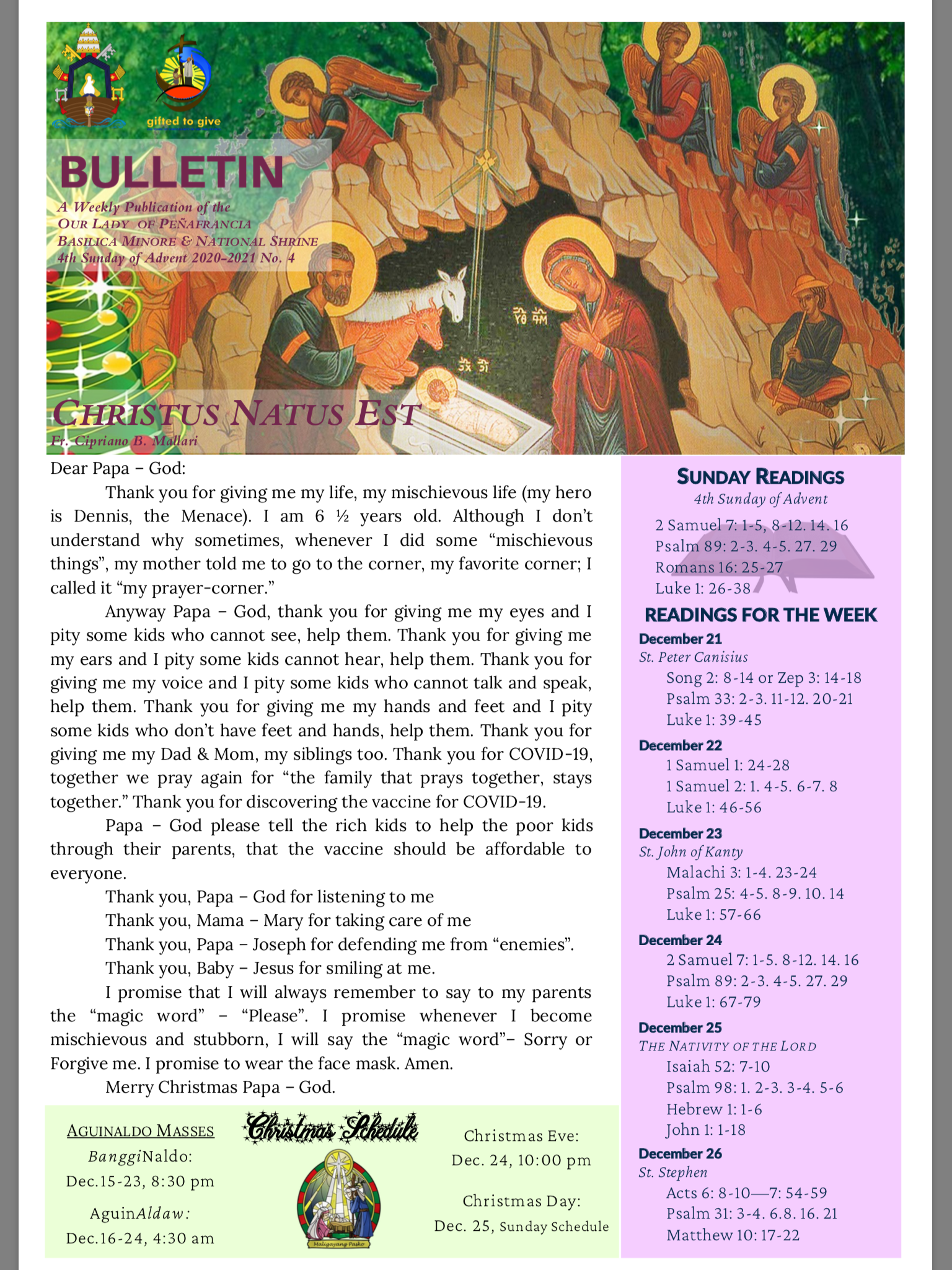 Basilica Bulletin: No. 4: 4th Sunday of Advent 2020